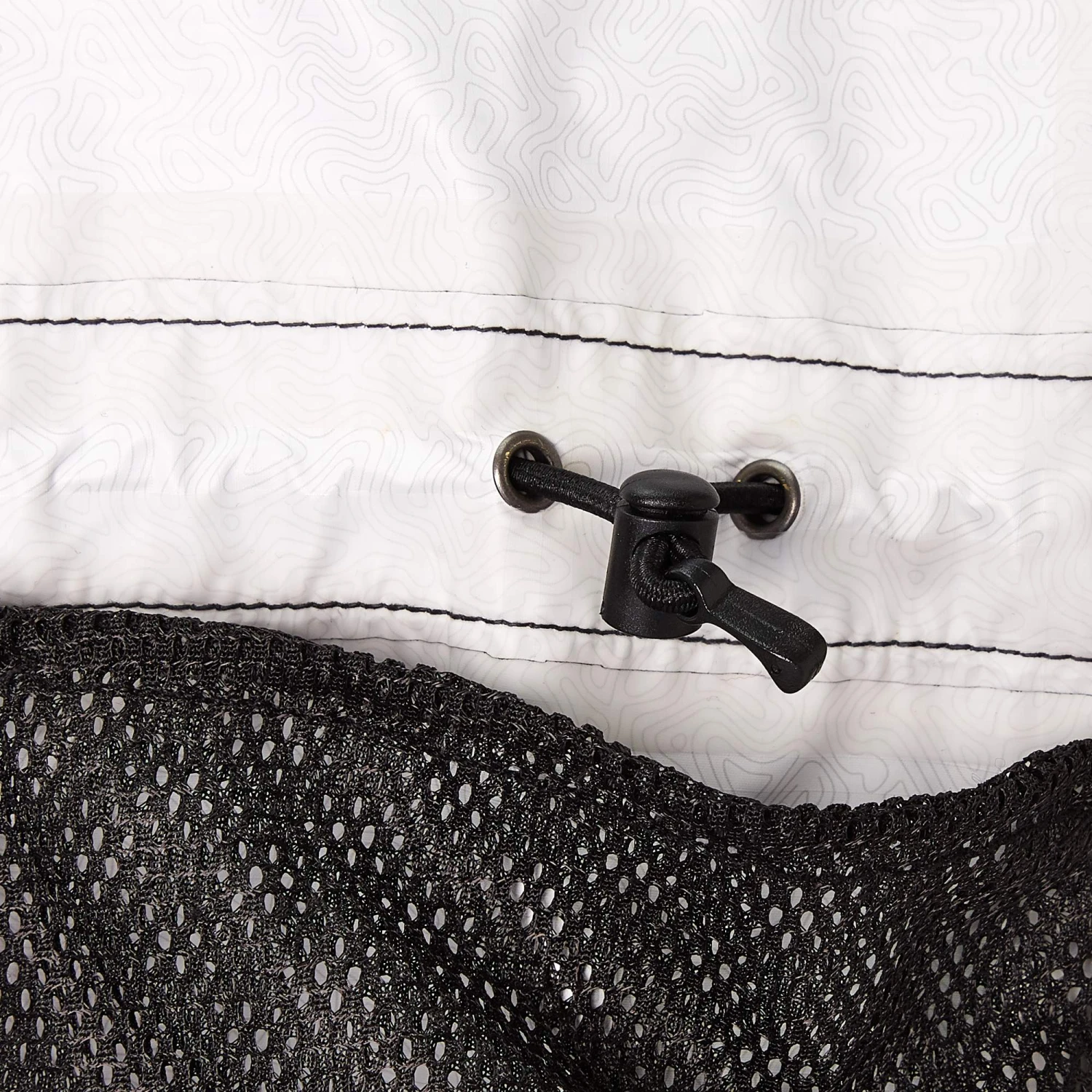 - Kapuze mit Schirm, Volumenregulierung hinten (mit Klettverschluss) und teilelastischem Saum an den Seiten für einen guten Sitz